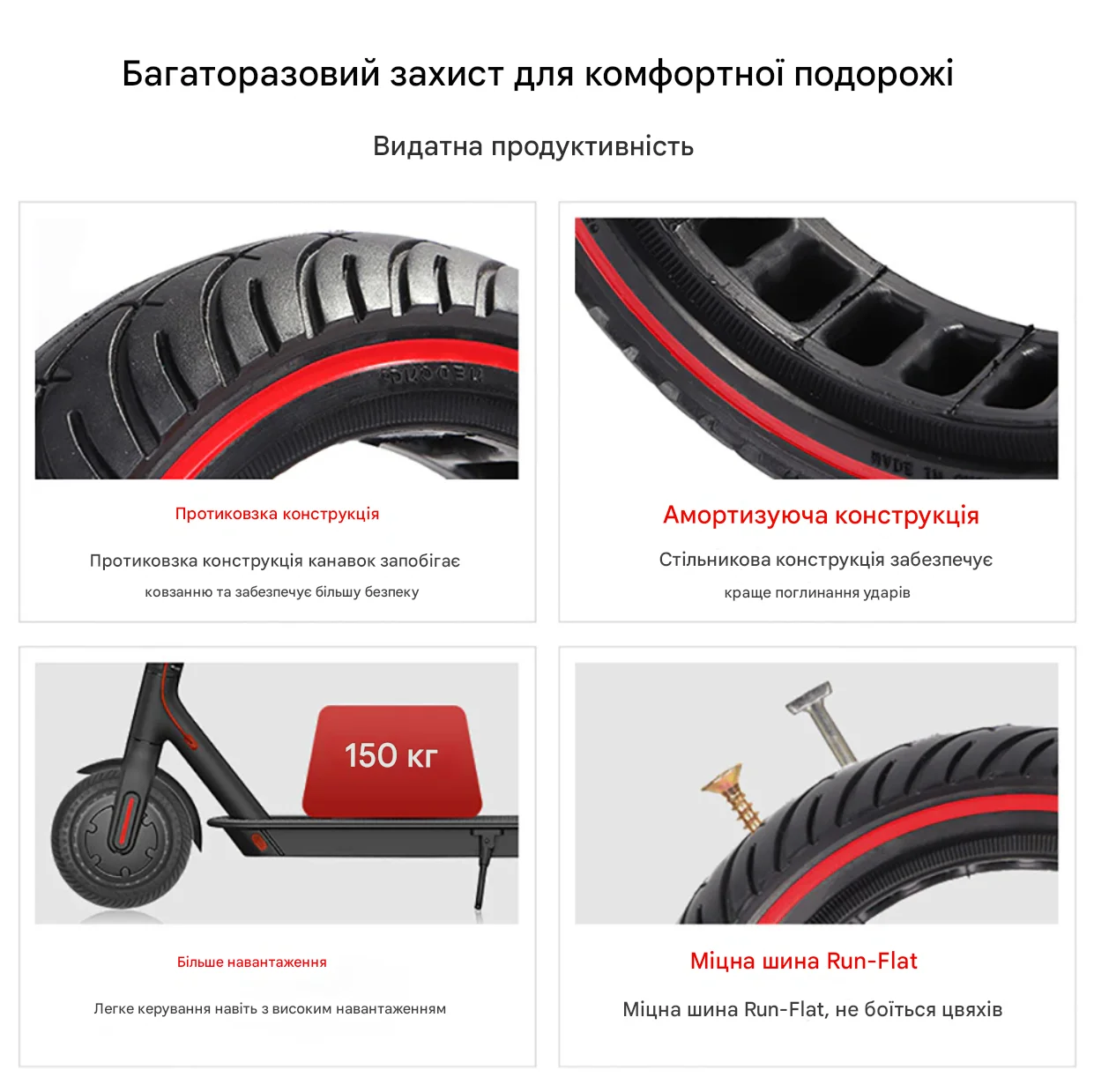 - Полная защита от повреждений: Это настоящая антипрокольная покрышка для электросамоката Xiaomi M365, которой не страшны стекла, гвозди или острые камни.