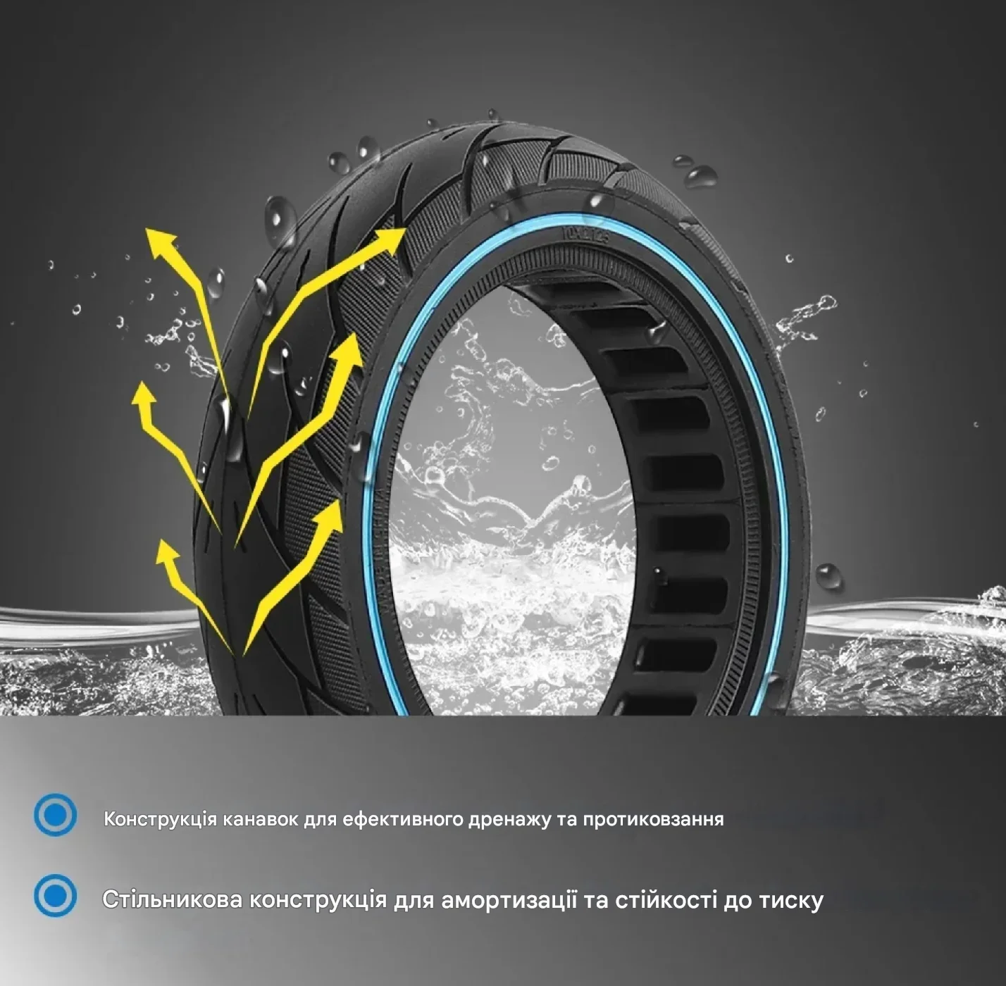 Эта бескамерная шина для Xiaomi M365 отличается уникальной перфорированной структурой. Отверстия в корпусе покрышки выполняют роль естественной амортизации, эффективно поглощая вибрации от неровностей дороги, что делает езду практически такой же мягкой, как на пневматических аналогах, но без риска повреждений.