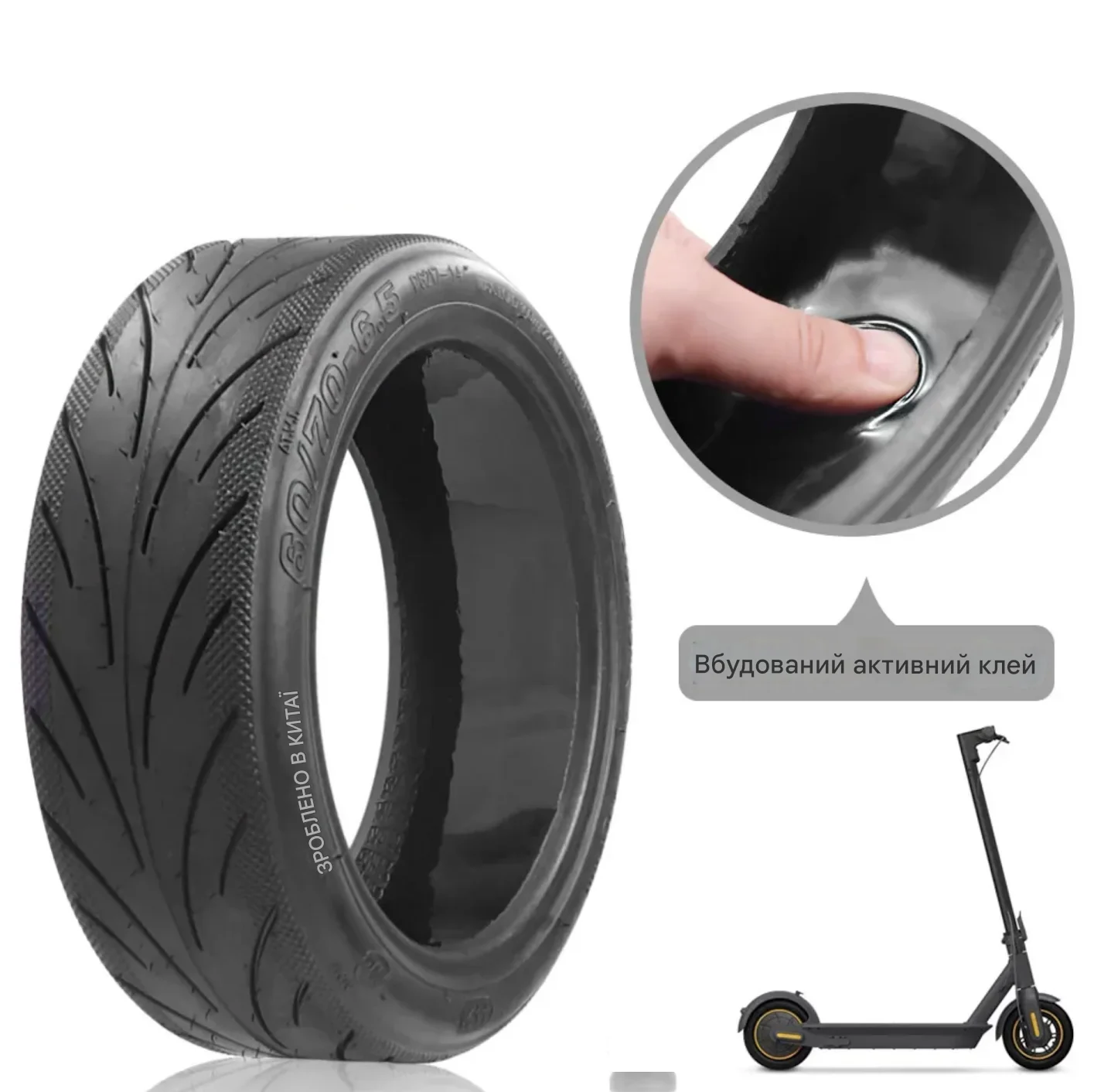 - Шина з антипроколом для електросамокату позволяет продолжать движение даже после повреждения, сохраняя давление внутри колеса.