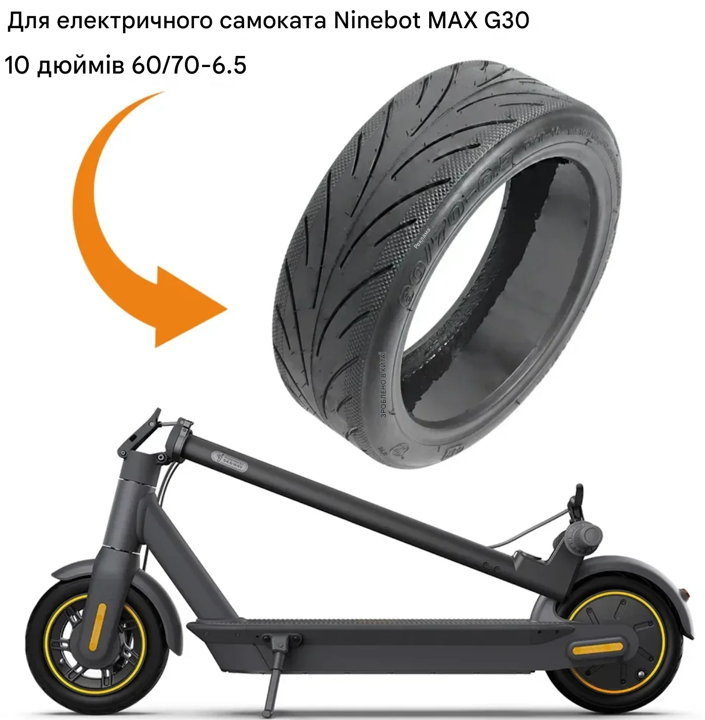 Бескамерная шина для Ninebot Max G30 (10×2.5) с антипрокольным гелем