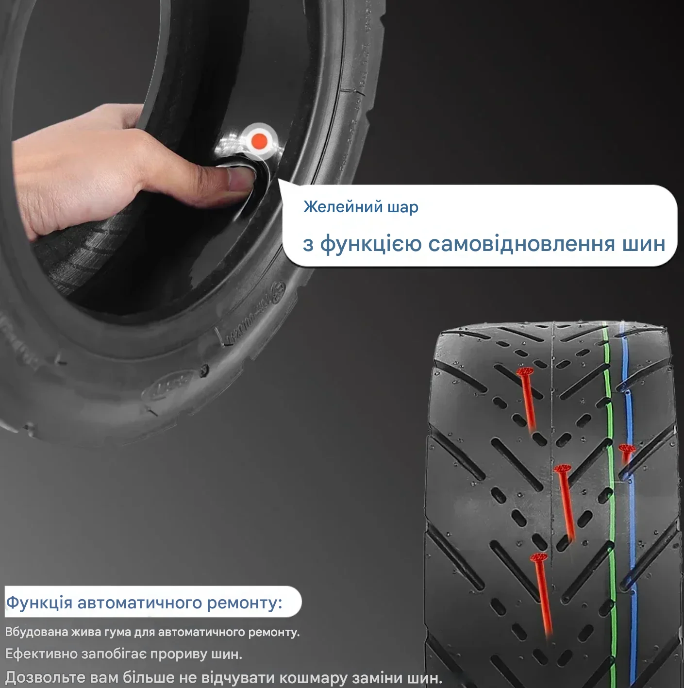 • Надежная защита от проколов: Антипрокольный гель эффективно предотвращает повреждения от острых предметов, обеспечивая долгий срок службы шины.